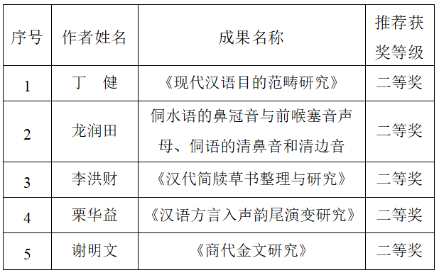 公示期:2026年1月27日至2月2日。如有异议,请向评奖工作办公室实名反映(联系方式:北京市东城区建内大街5号中国社会科学院语言研究所科研处 010-85195385),评奖工作办公室将严格保密,并认真组织核实。