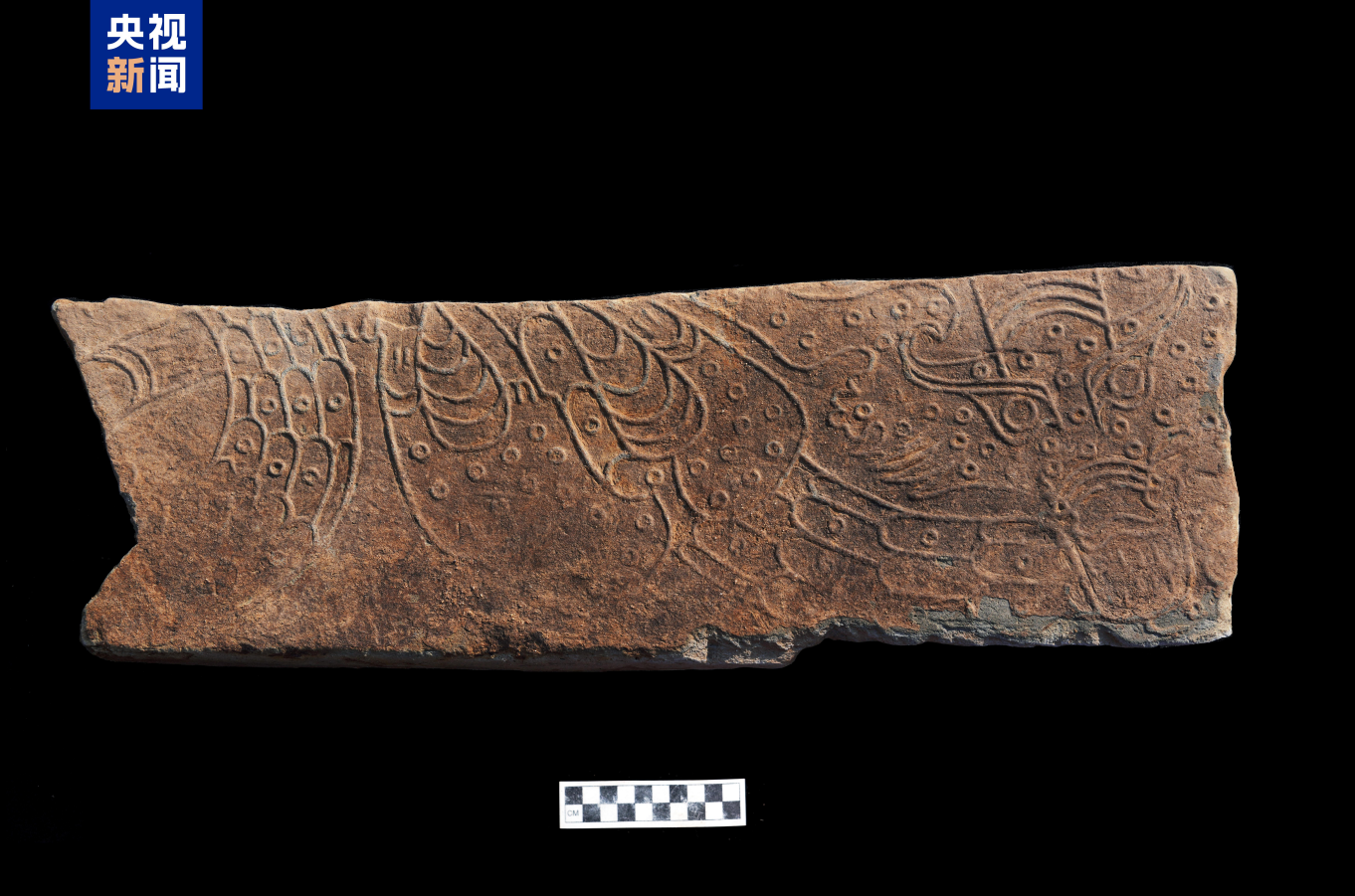 △山东青岛琅琊台遗址山顶建筑基址龙纹踏步空心砖局部