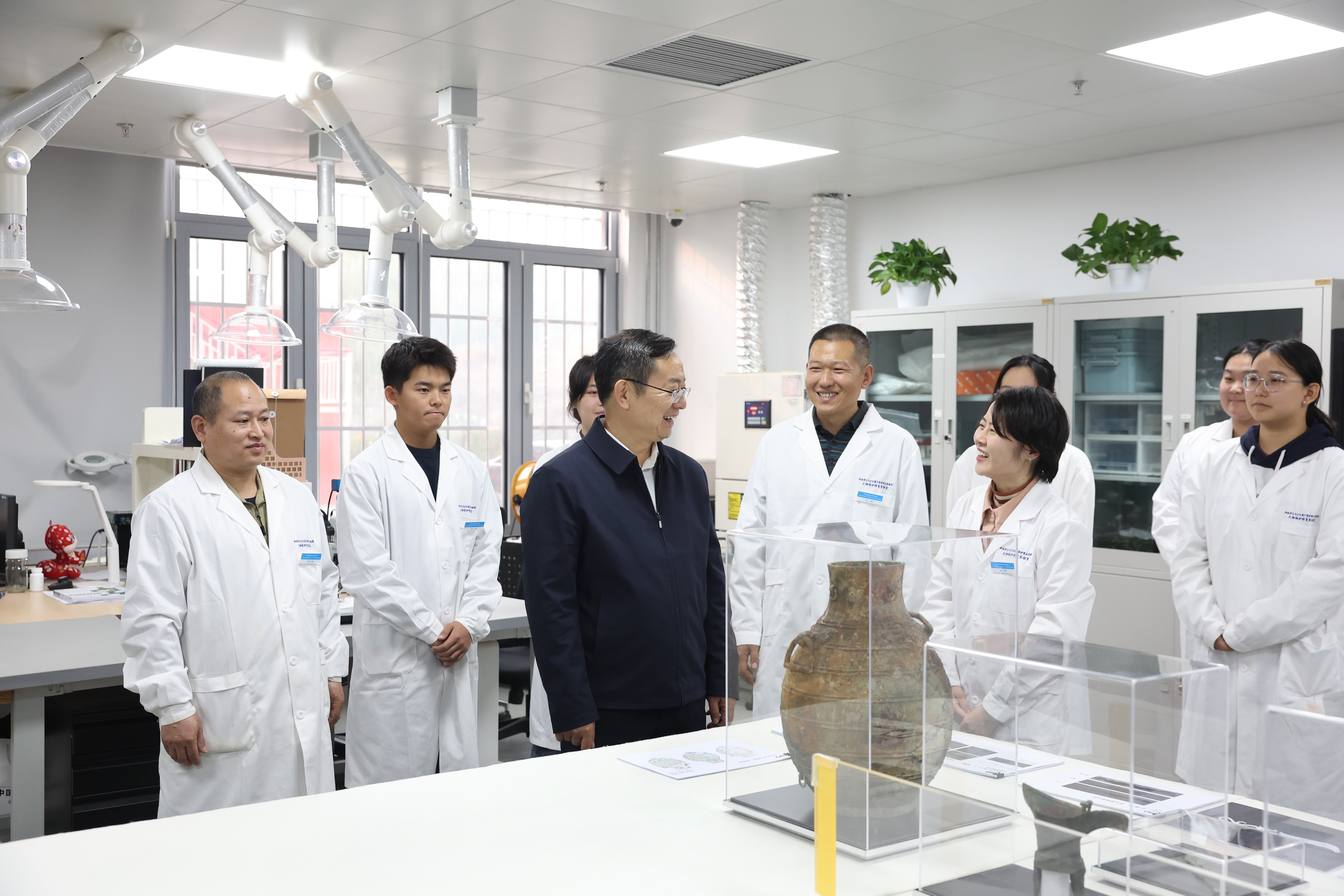 学习贯彻党的二十届四中全会精神中央宣讲团成员,中国社会科学院院长、党组书记高翔调研科技考古与文化遗产保护重点实验室  本网记者 朱高磊/摄