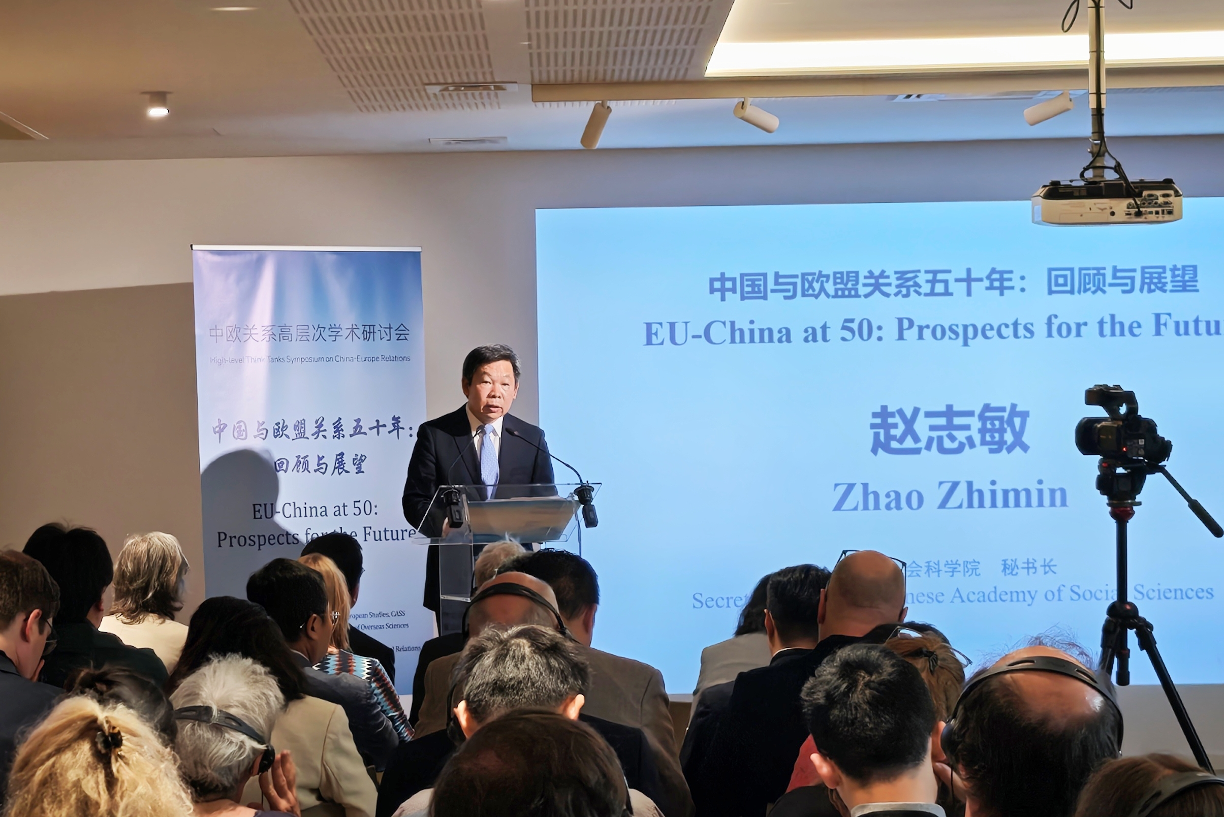 赵志敏首先代表中国社会科学院对研讨会召开表示祝贺。他指出,2025年是中国同欧盟建交50周年。5月6日,习近平主席同欧洲理事会主席科斯塔、欧盟委员会主席冯德莱恩互致贺电,强调中欧双方要深化战略沟通,增进理解互信,巩固伙伴定位,扩大相互开放,妥处摩擦分歧,开辟中欧关系更加美好的未来。他表示,世界正经历百年未有之大变局,国际形势深刻复杂演变,多边主义正遭到单边主义、保护主义、排外主义、极端民族主义等“零和思维”的多重挑战。中欧双方要践行开放发展理念,为动荡不居的世界注入更多稳定性、确定性、正能量;要秉持多边主义初心,团结世界各国共迎挑战、共谋合作、共同发展;要加强文明交流互鉴,为构建人类命运共同体提供智慧、构筑桥梁、夯实根基。他指出,智库交流是人文交流的重要组成部分,中国社会科学院长期致力于推动中外学术交流合作。期待与会学者共同勾勒未来50年中欧合作共赢之道,积极为构建新时代中欧全面战略伙伴关系建言献策,为推动中欧关系行稳致远贡献更多智慧和力量。
