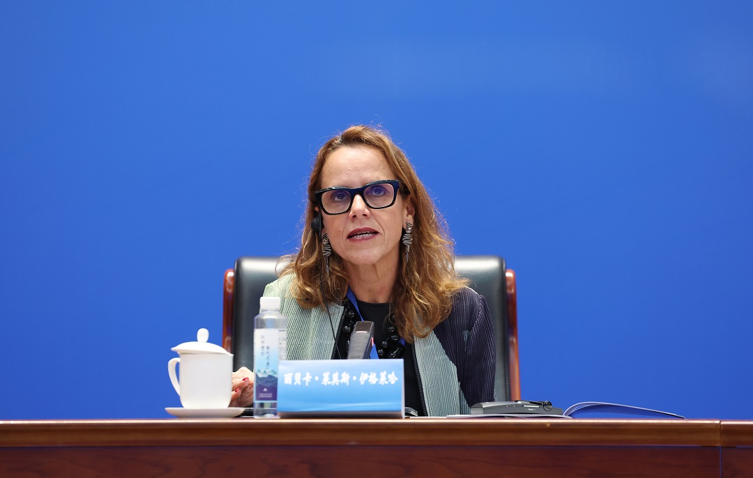 拉丁美洲社会科学院秘书长丽贝卡·莱莫斯·伊格莱哈致辞。本网记者 朱高磊/摄