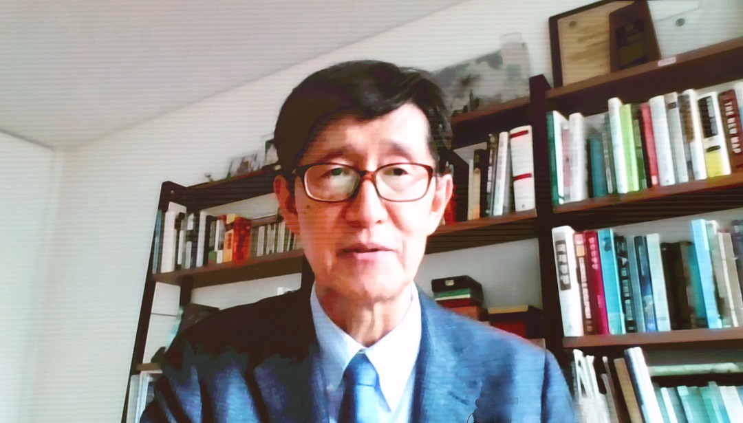 韩国拉美协会名誉主席金元镐作视频致辞。本网记者 朱高磊/摄